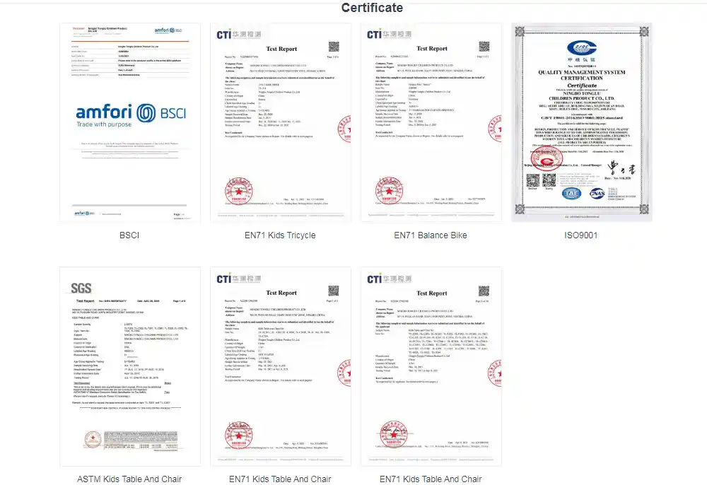 Certificações comoEN71eASTMindicar que nossotriciclo infantil e infantil foi submetido a testes especializados para verificar se os materiais não são tóxicos, se os cantos cortam as mãos e se as peças são firmes e atendeu aos padrões de segurança.